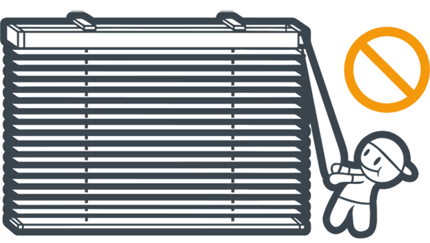 Do not apply excessive force to the pull beads. Excessive force may cause the blinds to detach and result in injury. The product must be installed in a level and horizontal position to ensure correct slat alignment, maintain proper light-blocking performance, and ensure safe operation.