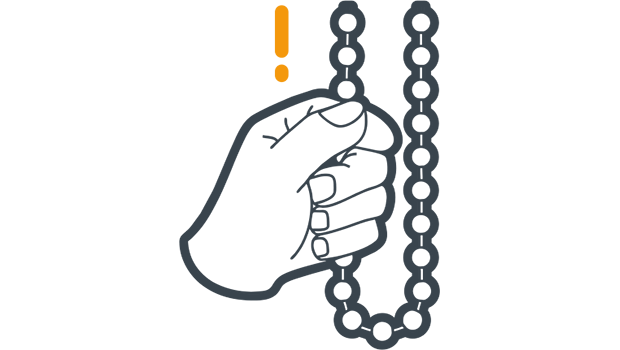 When operating the pull bead/pull cord, the rope must be held securely by hand at all times. This is required to maintain safe control of the mechanism and to prevent operational faults or damage caused by human error.