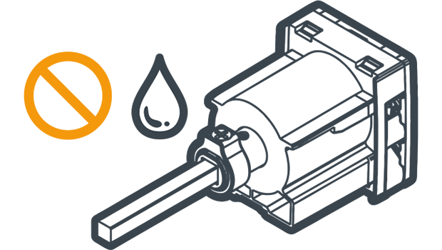 Lubrication of any rotating parts or movable sections is strictly prohibited. Applying lubricants may impair the mechanism and cause damage to the blinds.